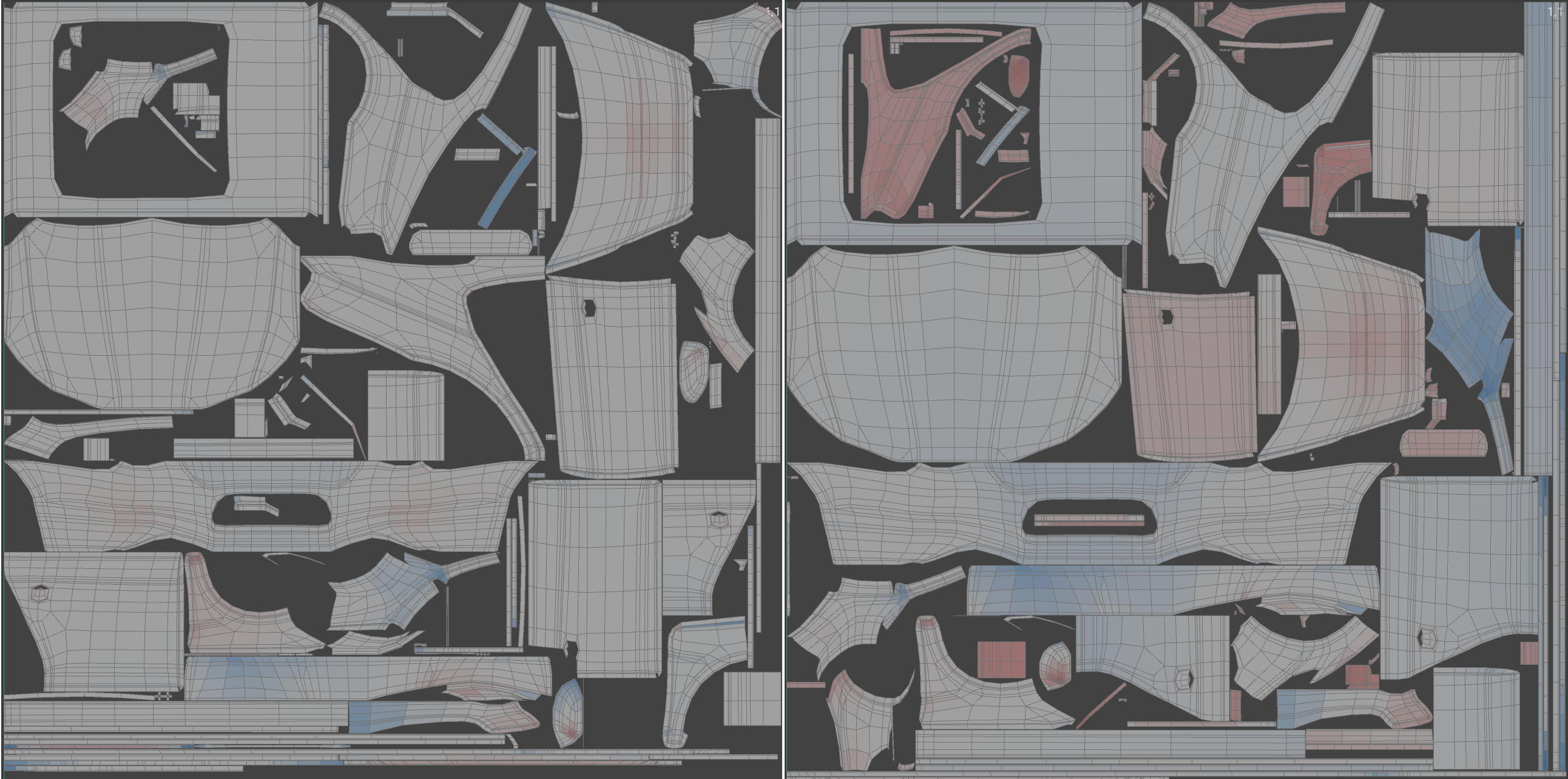 Si cette option est activée, l’algorithme tentera de trouver des îlots UV identiques sur la base de la géométrie identique mais reflétés et de les empiler de manière cohérente les uns sur les autres. Cela fonctionne mieux avec la modélisation sur une surface dure (objets techniques) et moins bien avec les formes organiques.