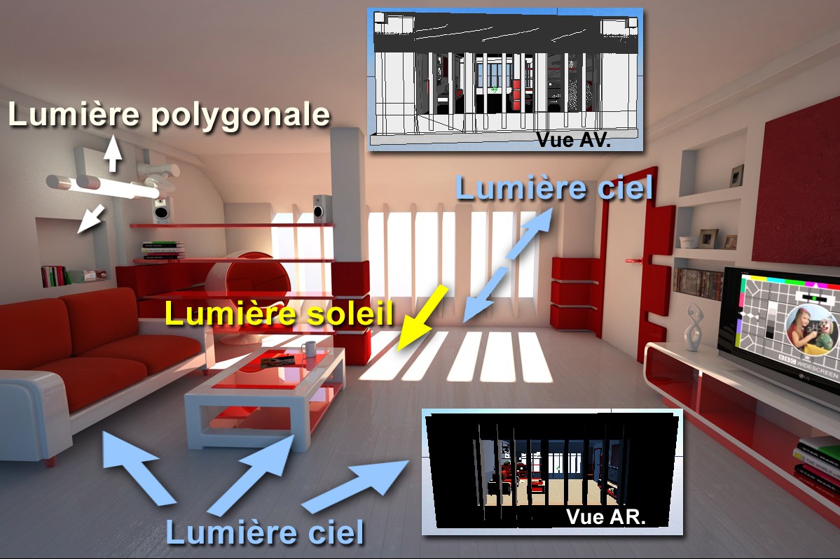Ces quelques sources de lumière sont suffisantes pour parvenir à un éclairage réaliste de cette scène. L'essentiel du travail se fait en IG. Autrement le préréglage Intérieur – Haut (Profondeur de diffusion haute) sera utilisé.