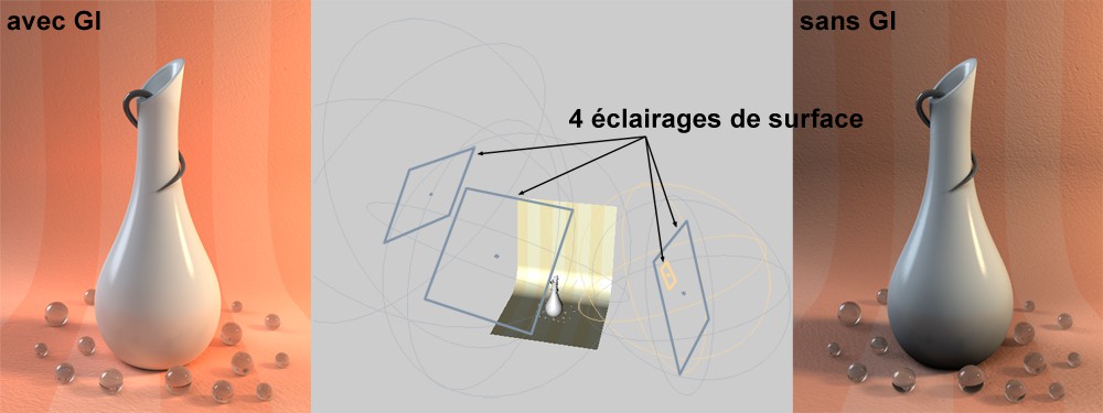 Comme vous pouvez le voir dans l'image ci-dessus, l'usage de l’IG (IC+ICProfondeur de diffusion = 3) donne une très agréable dispersion de la lumière.