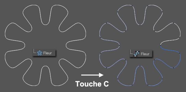 Pour modifier les points d’ancrage en mode Crayon Spline par exemple, vous devez tout d’abord convertir la spline en objet modifiable en utilisant la commande Maillage / Conversion / Autoriser les modifications ou en appuyant sur la touche C. Cependant, vous êtes libres de modifier la primitive spline avec un objet de déformation, sans conversion préalable.