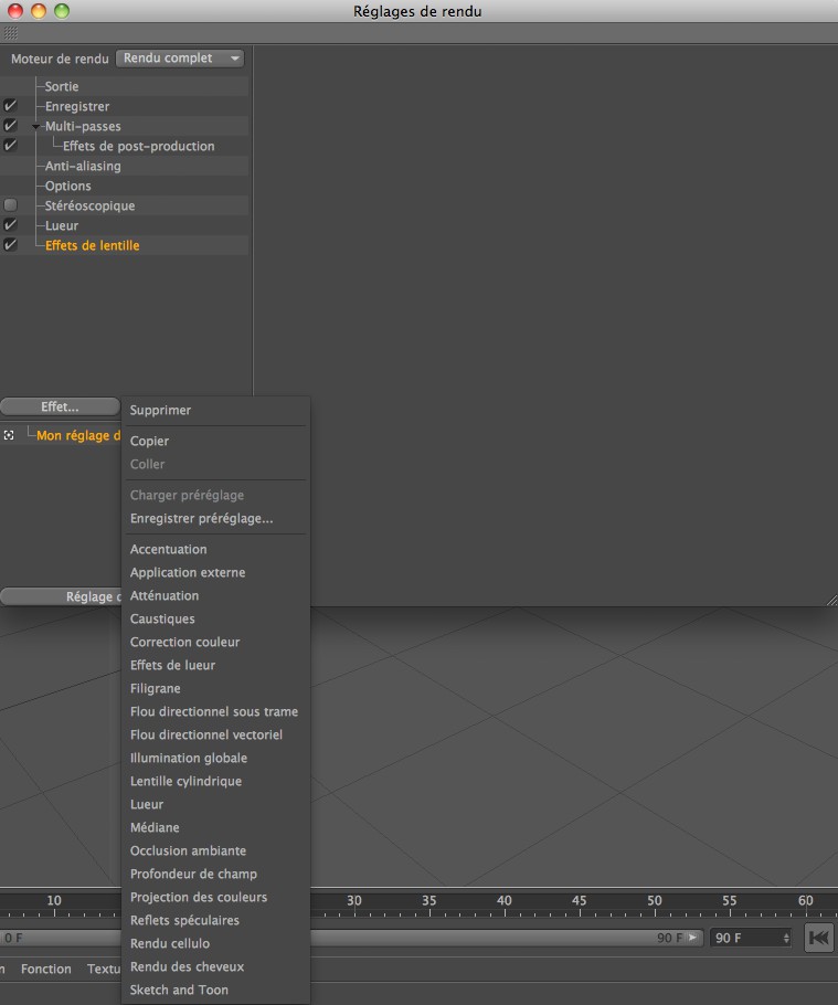 Choisissez Rendu / Editer les réglages de rendu. Cliquez sur le bouton Effets (vérifiez que le type de moteur de rendu est réglé sur Standard ) et sélectionnez Sketch and Toon dans le menu qui apparaît.
