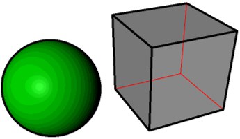Le matériau Rouge est maintenant utilisé pour le rendu des lignes cachées de la scène (les lignes qui devraient normalement être cachées par les surfaces). Si vous déposez le matériau Rouge dans le champ de Lignes visibles, ce matériau sera utilisé pour l’affichage des lignes visibles et des lignes cachées.