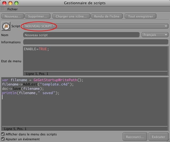 Le chemin d'accès à l'image devant être relatif au fichier de scène, les images d'icônes doivent se trouver dans le répertoire de la scène.