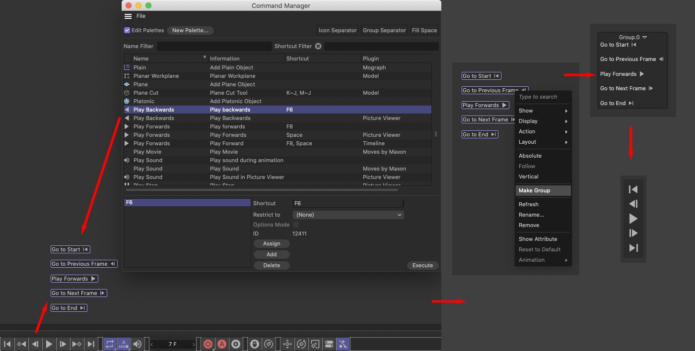 Voici une brève description de la création d'un groupe de commandes d'affichage frontal contenant les options de lecture de la barre d'outils d'animation :