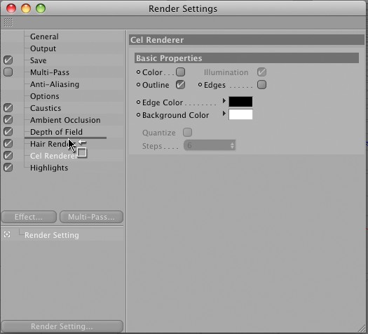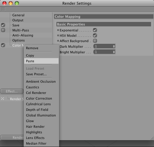 Cliquez sur le bouton effets oufaites un clic droit dans la partie gauche des réglages de rendu.