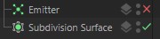 Créez un cube et faites-en un enfant d’un objet Surface de subdivision. Le Déformateur va créer une sphère à partir du cube. Si vous désélectionnez l’activation de l’objet, seul le cube (l’objet original) sera affiché.