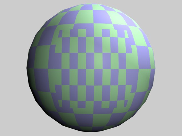 - Créez un nouveau matériau avec une texture (en utilisant la matière Echiquier, par exemple), et affectez-le à la sphère. Dans la boîte de dialogue Texture, entrez 20 pour les valeurs de Longueur X et Y pour que l’effet suivant soit plus évident.