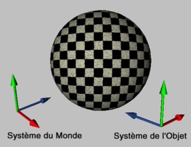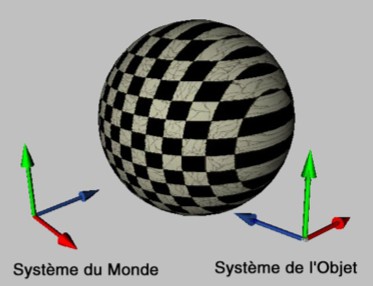 Adapter aux axes d’objet et Adapter aux axes du monde font tourner les axes de texture de façon à ce qu’ils soient parallèles respectivement aux axes d’objet et aux axes du monde.