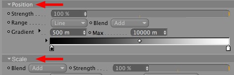 Limite Min / Max: Définit les limites entre lesquelles le paramètre peut être défini pour un élément. Les premières valeurs Min/Max définissent la plage couverte par les entrées numériques; la valeur du curseur définit uniquement le minimum et le maximum qui peuvent être atteint en déplaçant le curseur.