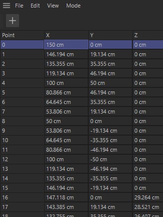 Il est possible de modifier les valeurs des cellules directement, par Glisser-déposer ou par Couper / Copier / Coller, de changer la position des rangées (colonne de gauche) par glisser-déposer et de traiter rapidement de grandes quantités de données même si l’objet possède un très grand nombre de Points et de Polygones. Le cadre de sélection (un cadre rouge sur une cellule active) indique sur quelle donnée vous travaillez. La navigation dans le tableau est donc très simple.
