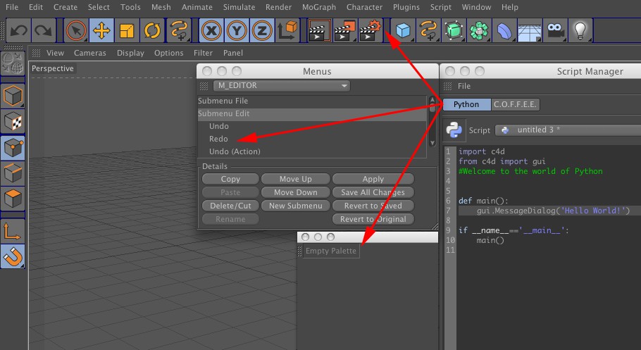 - Untitled script from Visual Studio Code : Créer un nouveau script Python temporaire dans Cinema 4D. Exécutez-la et supprimez-la de Cinema 4D.