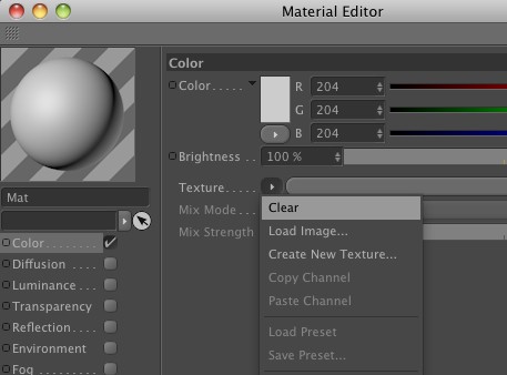La plupart des canaux de Matériaux permettent de charger une texture. Vous pouvez sélectionner une matière bidimensionnelle ou une séquence image ou vidéo. Votre sélection sera utilisée comme texture. CINEMA 4D peut lire les formats suivants : Formats d’image, Formats de film.