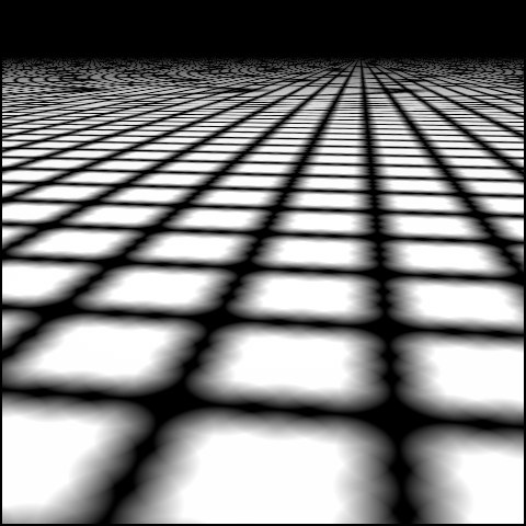 Cet effet est causé par la distorsion de la perspective. Chaque pixel de l’écran représentant le sol, près de l’horizon, contient peut-être des centaines, voire même des milliers de pixels de texture.