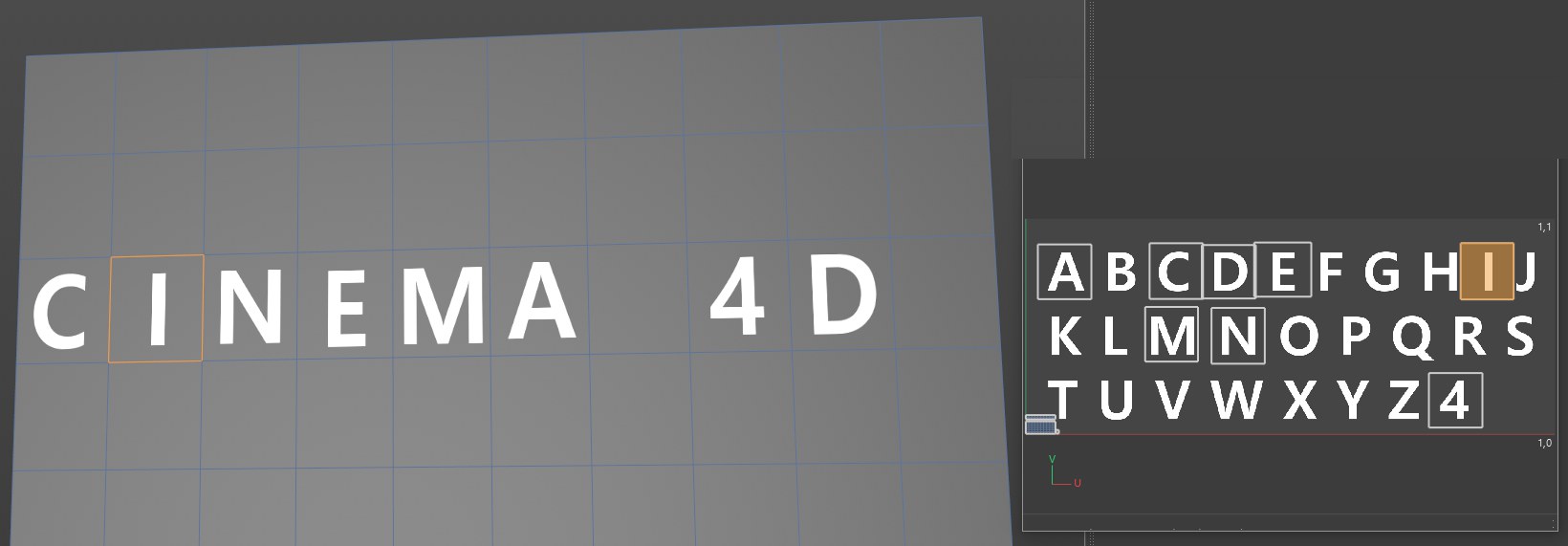 Les polygones UV dans la rangée centrale ont chacun été positionnés sur les lettres respectives.