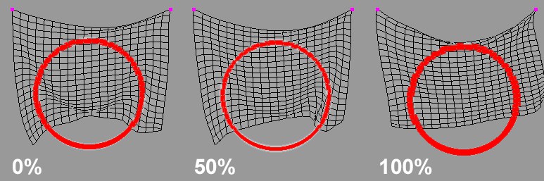 La gravité est une Force attirant l’objet Tissu dans une certaine direction. Le paramètre Gravité sera toujours calculé pour l’axe Y et affectera l’objet Tissu sur cet axe. Si la valeur entrée dans ce champ est négative, la gravité sera calculée vers le bas sur l’axe Y. Si elle est positive, elle sera calculée vers le haut sur l’axe Y. Cette valeur est de -9,81 par défaut, ce qui correspond à la Force de gravité terrestre (-9,81 m/sec² pour être exact !). Si vous baissez cette valeur, vous allez augmenter la force exercée par la gravité sur l’objet tissu dans la direction -Y.