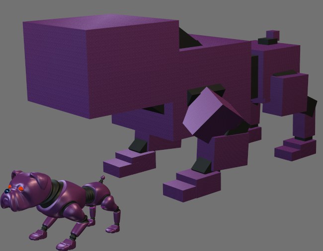 À gauche, pas de lissage ; à droite lissage à l'aide de la Propriété de Phong.