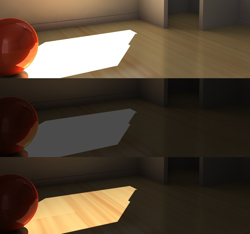 De gauche à droite : l’image rendue, le canal alpha, le résultat.