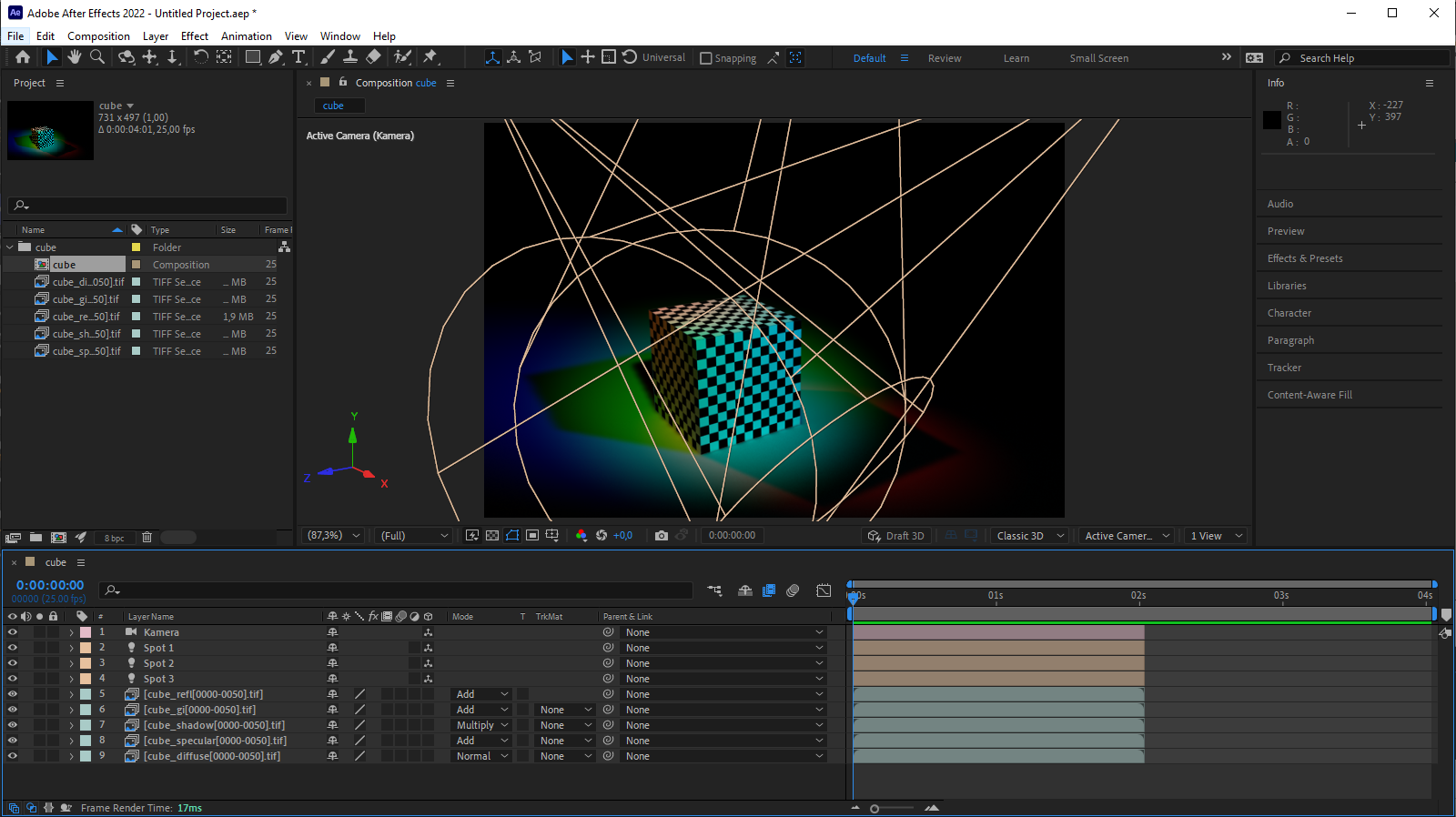 Voir sur After Effects pour plus d’informations sur la connectivité de After Effects et Cinema 4D.
