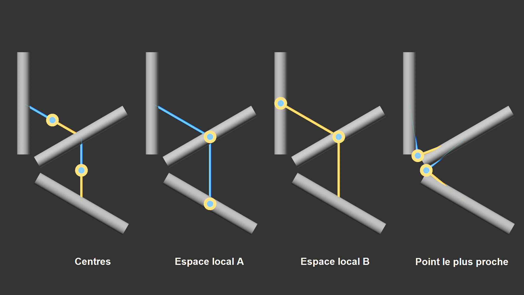 Ce mode relie les corps rigides en fonction de la distance qui les sépare.