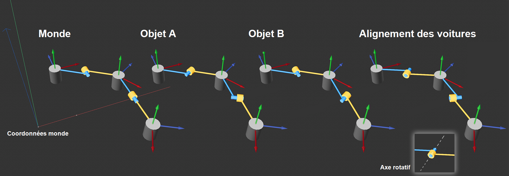 Monde: les connecteurs sont orientés avec leur axe Z vers l'axe Z du monde.