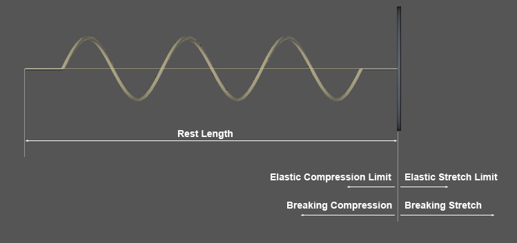 Si un ressort est étiré ou comprimé au-delà des limites fixées ici (sur la base de la longueur ou de l'angle de repos d'origine), il se casse, c'est-à-dire qu'il se comporte comme s'il était désactivé ou n'existait tout simplement plus.