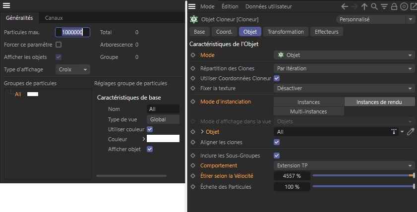 Attribution du groupe Global des paramètres Thinking Particles à un objet clone.