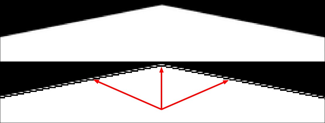 En fonction des réglages du Filtre Anti-aliasing, le canal Alpha peut également être lissé. Cela peut avoir des conséquences problématiques par la suite lors du compositing, notamment lorsque le filtre Sinc, qui peut (comme montré dans l’image ci-dessus) générer des bordures, est utilisé. Les filtres anti-aliasing peuvent, en fonction de leurs réglages, avoir un effet qui va au-delà des bords d’un objet. Ceci peut être atténué en sélectionnant un filtre différent ou en utilisant des valeurs de Largeur du filtre et de Hauteur du filtre plus petites.