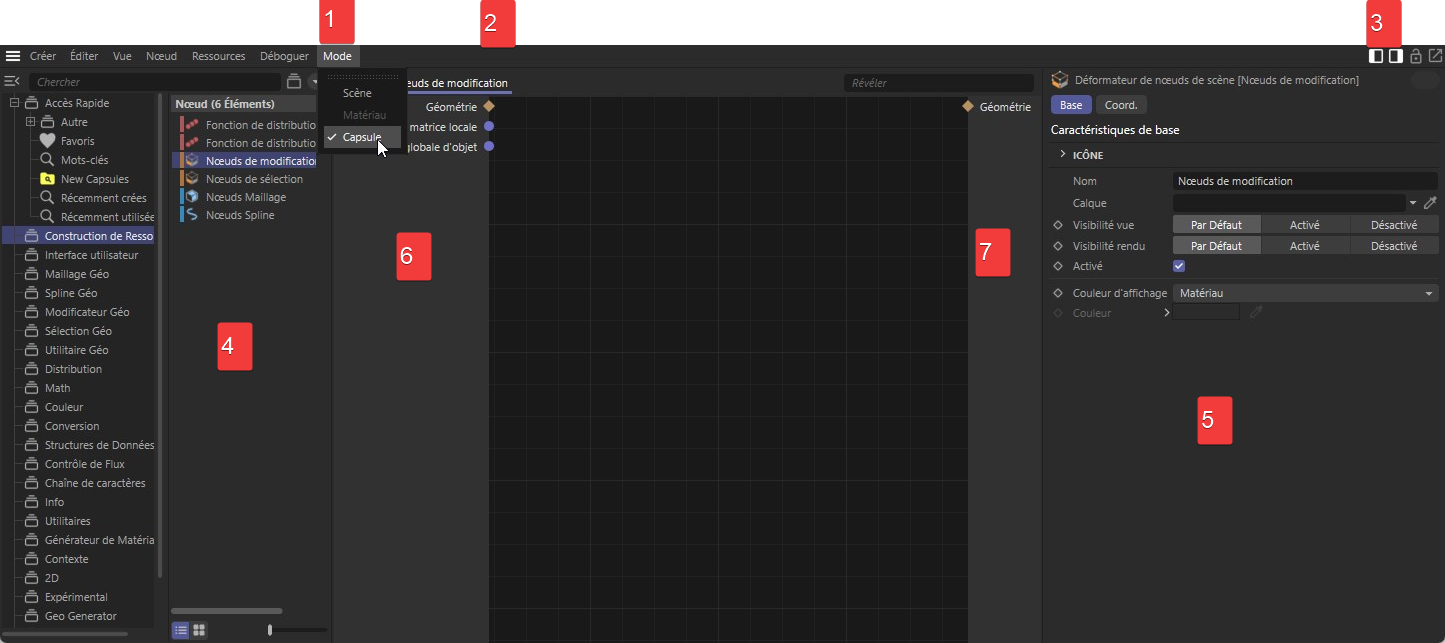 Les différents éléments de l'éditeur de nœuds en mode Capsule.