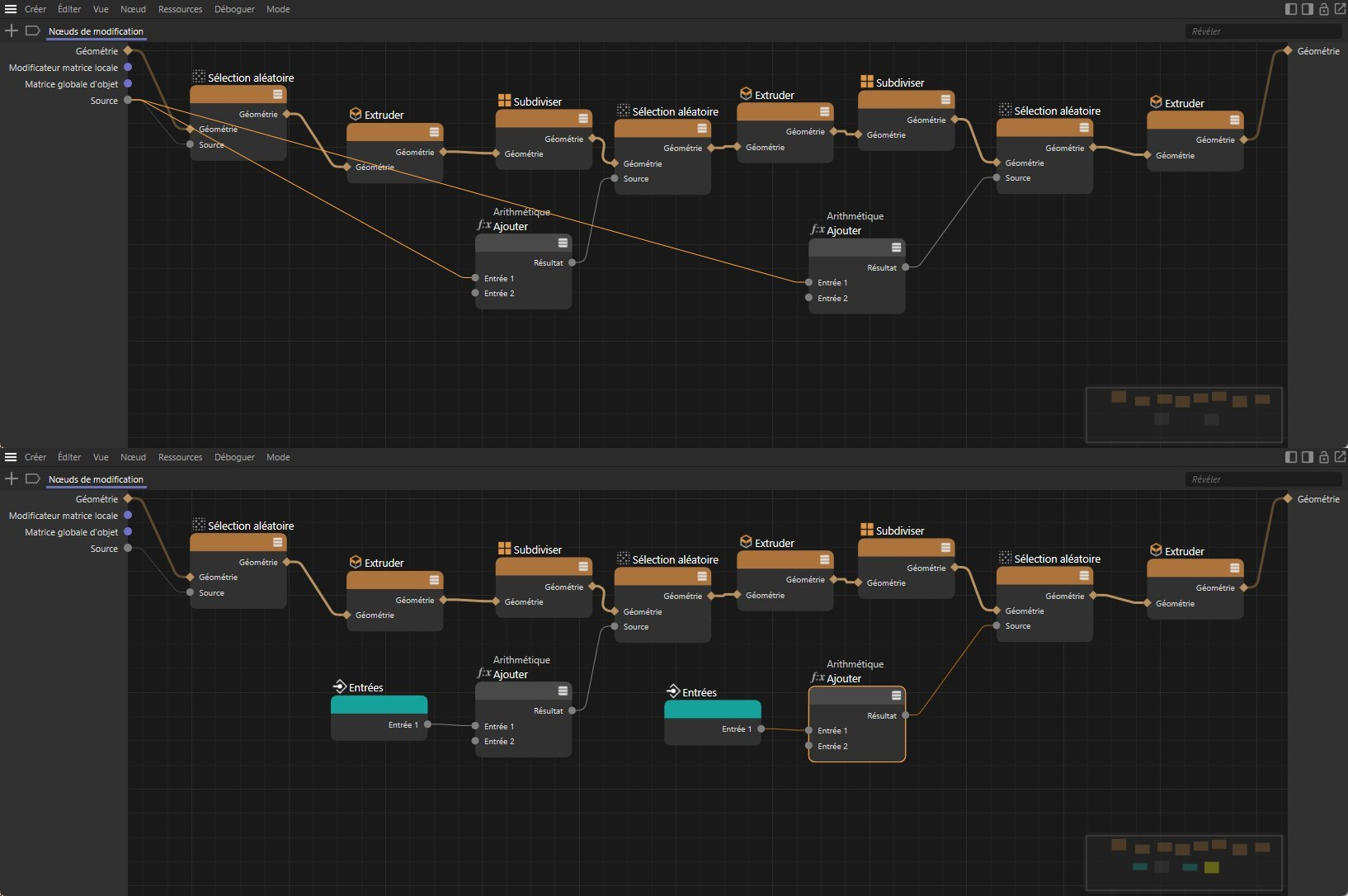 Avec un groupe de modificateurs de nœuds, les géométries peuvent être modifiées directement dans le gestionnaire d'objets.