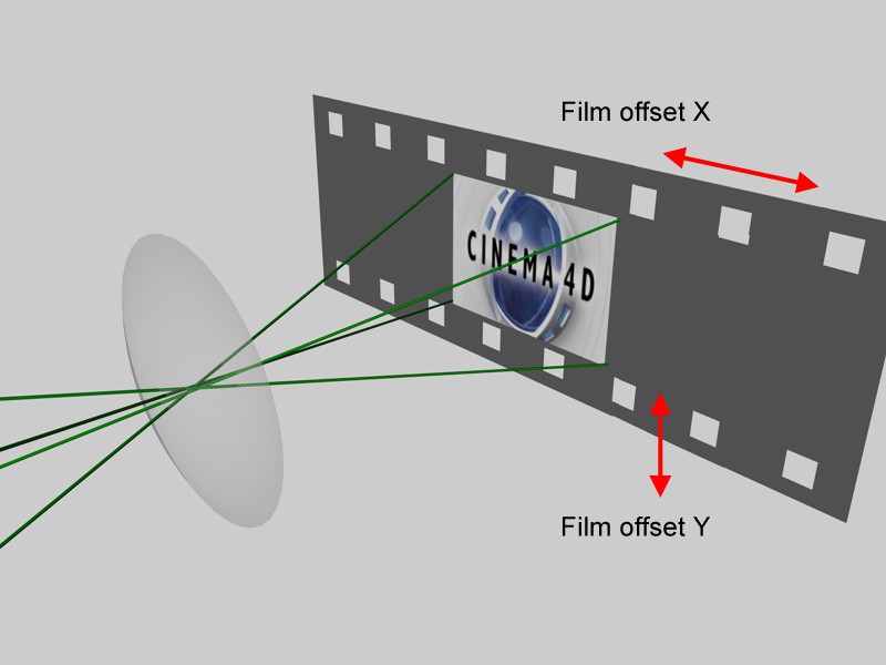 Supposons qu’une caméra Cinema 4D fonctionne comme une caméra traditionnelle, les images étant enregistrées successivement sur pellicule. Maintenant, imaginez qu’il soit possible de déplacer le film obtenu sur les axes X et Y (c’est-à-dire au-delà des limites de la pellicule). C’est exactement le rôle de ces paramètres. Cinema 4D pousse le concept un peu plus loin en ce sens que l’utilisateur ne sera pas limité à la taille de la pellicule.