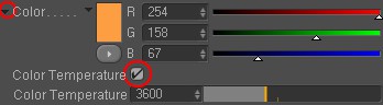La balance des blancs peut bien sûr être utilisée pour colorer les rendus. La valeur neutre s'intitule Lumière du Jour (6500K). En règle générale, des valeurs plus basses donnent des teintes bleues et des valeurs plus élevées, des teintes jaunes (complètement à l'opposé de la représentation ci-dessus, la balance des blancs est au final une valeur de correction).