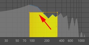 Les propriétés des Plages de sonde sélectionnées sont affichées dans le menu Propriétés des sondes. Lorsqu’elle est sélectionnée, une Plage dispose de plusieurs poignées que vous pouvez utiliser pour ajuster la fréquence et le niveau sonore. Si plusieurs Plages sont sélectionnées, vous verrez apparaître une poignée commune avec laquelle vous pourrez éditer simultanément toutes les Plages de sonde. Faites un cliquer-glisser sur une Plage pour la déplacer.