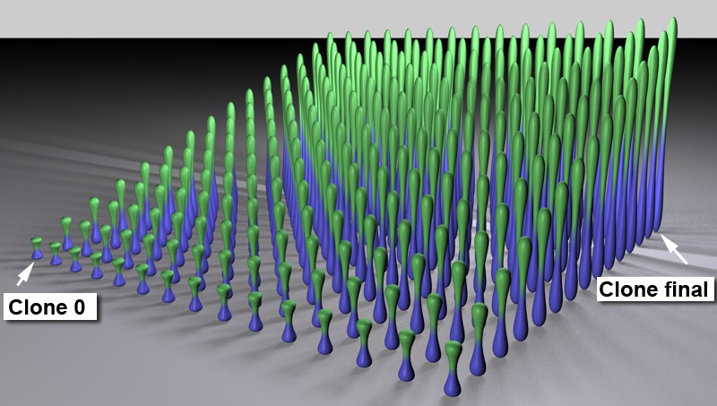 - Particules : Le premier clone se trouvera sur la première particule émise.
