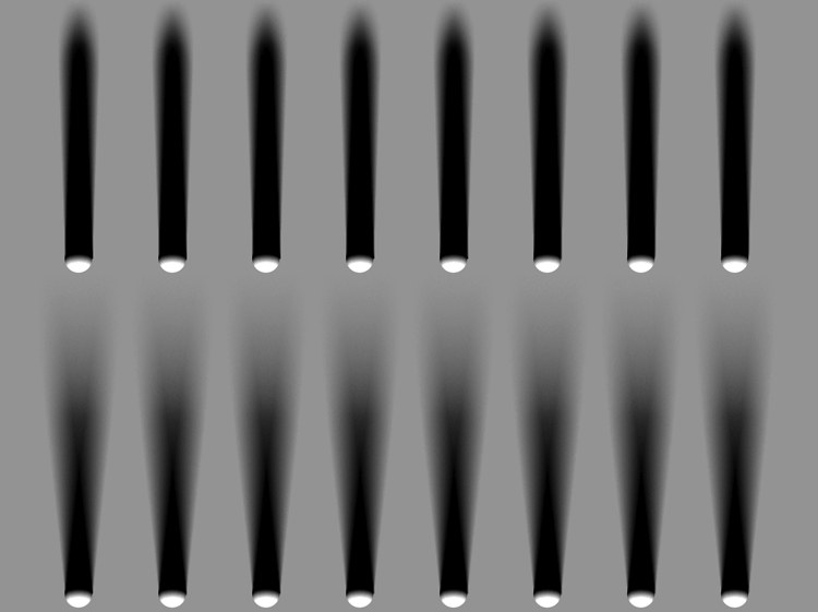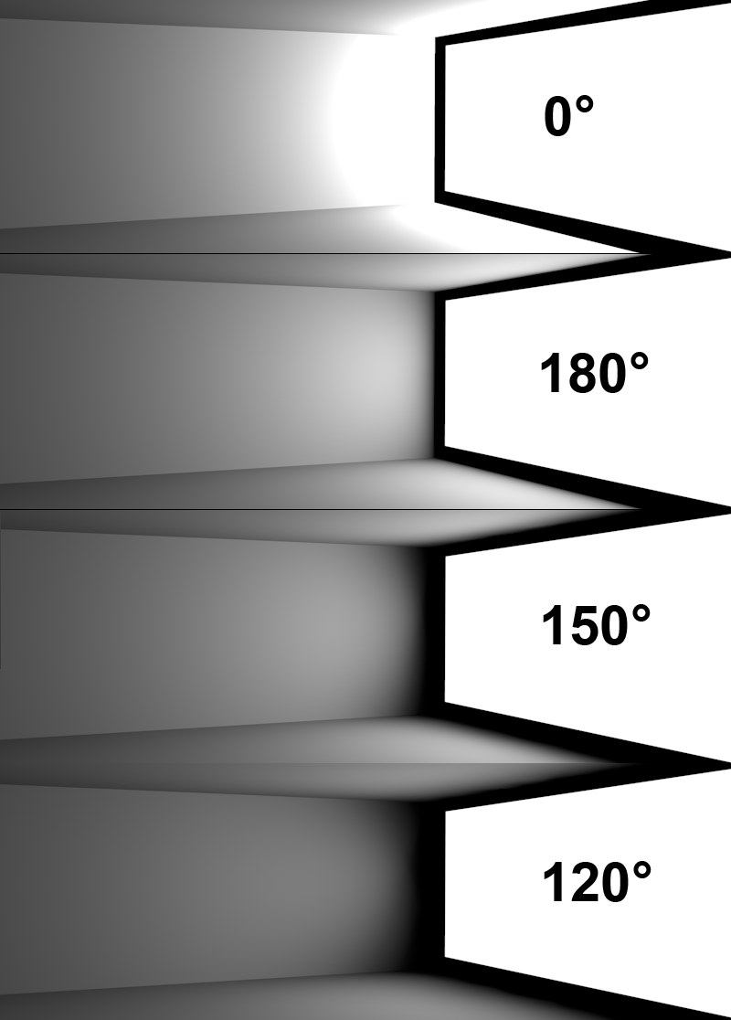 Différents angles d‘atténuation appliqués à une lumière de surface émettant de droite à gauche.