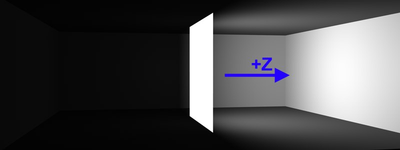 Lumière de surface rectangulaire avec activation de l‘option Direction Z uniquement au centre de la pièce.