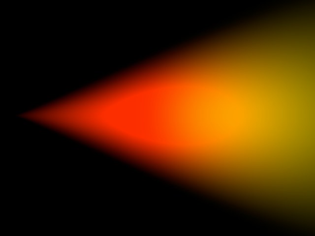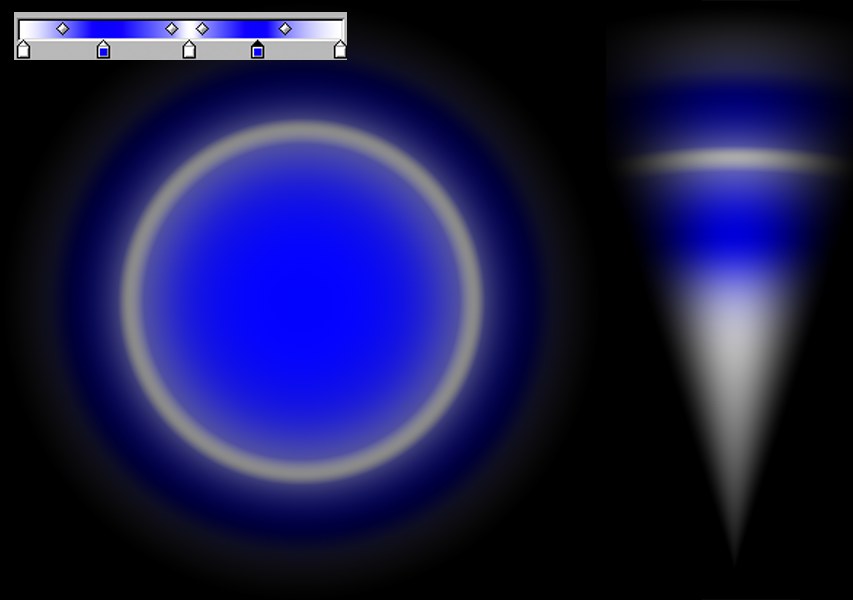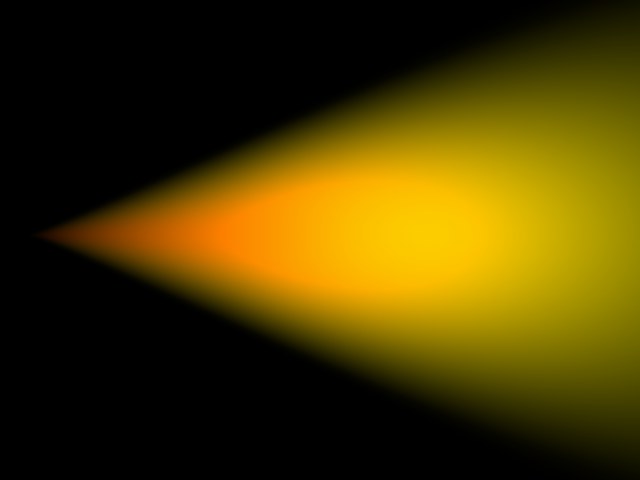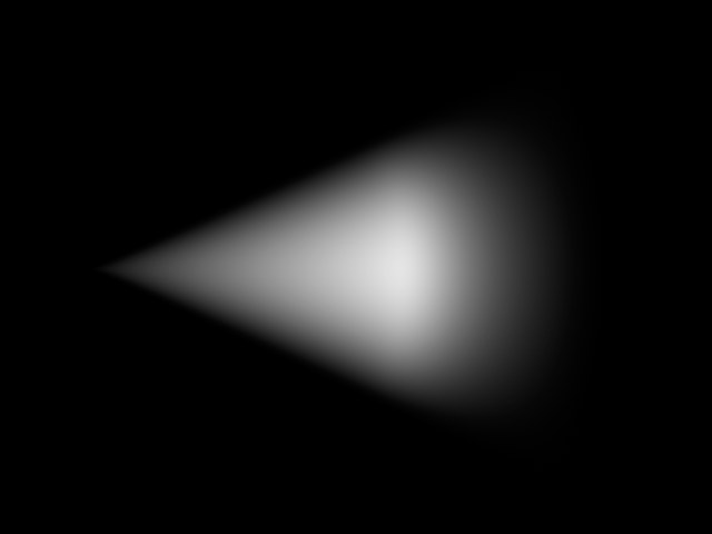 Cette option n’est disponible que pour les sources de lumière Spot et uniquement si l'option Atténuation vers la frange est activée. Normalement, la couleur interne se comporte de telle façon qu’elle suit linéairement l’axe Z de la source de lumière Spot vers la couleur externe. Cependant, si vous sélectionnez Atténuation de la couleur vers la frange, la couleur interne va aussi se répandre radialement vers l’extérieur à partir de l’Angle interne, pour rencontrer la couleur externe.