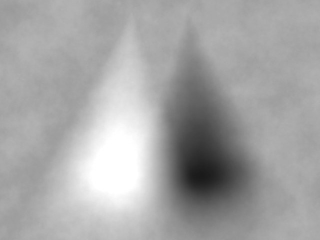 Si vous désirez créer de fins rayons de lumière, comme les raies de lumières qui apparaissent à travers des craquelures ou derrière des colonnes de pierre, vous devez définir une distance d’échantillonnage relativement faible. Notez qu’une lumière complètement couverte, qui ne permet le passage d’aucune raie de lumière, peut être échantillonnée selon une valeur beaucoup plus haute.