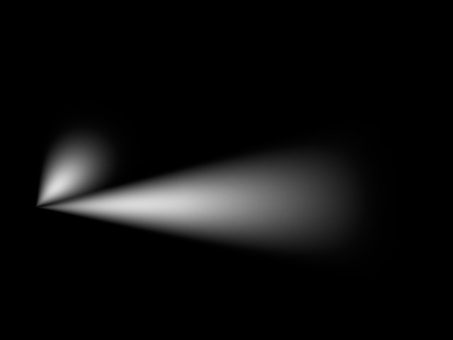 En suivi de rayon, si le rayon atteint le cône de lumière à son origine, la distance entre les points d’entrée et de sortie pourrait être, par exemple, 100 unités. Mais si le rayon atteint le cône plus loin de la source de lumière, cette distance pourrait atteindre 5 000 unités ou plus.