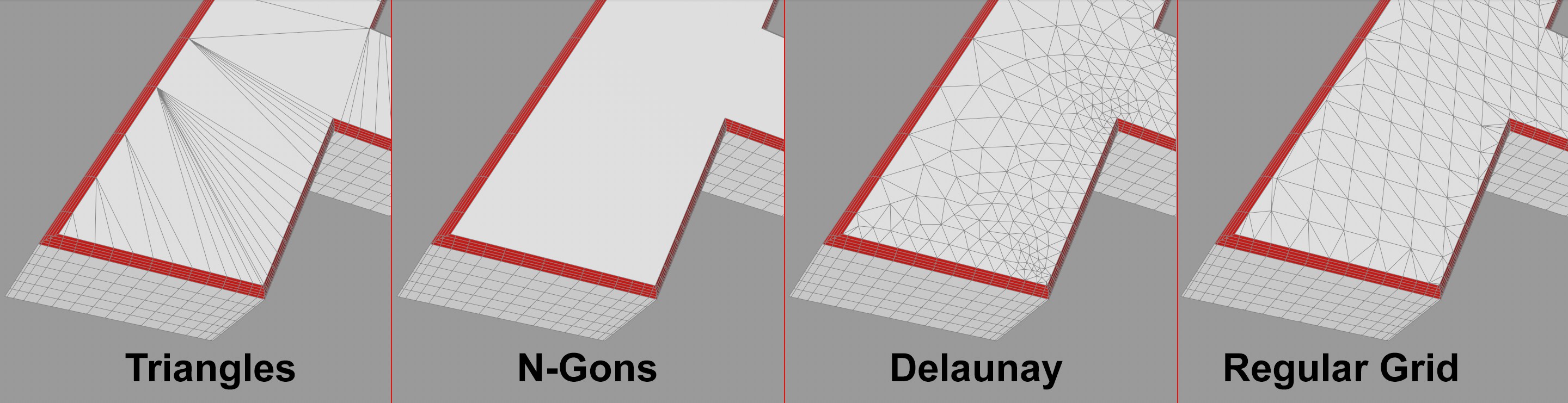 Pour les 3 premiers modes, aucun nouveau point ne sera créé sur les surfaces de couvercles. Résultat : de longs triangles seront créés, ce qui peut conduire à des problèmes en termes d’ombrage ou de déformations.