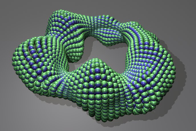 Bien entendu, le Déplaceur fonctionne également en association avec tous les autres objets MoGraph. Dans l’exemple ci-dessous, un anneau a été déformé avec un Déplaceur et une matière Bruit. Puis, nous avons cloné une sphère en utilisant le Cloneur en mode Objet :