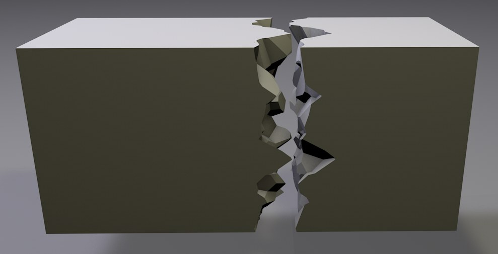 Avec cette option, il est par exemple possible de créer deux fragments aux surfaces de fracture irrégulière :