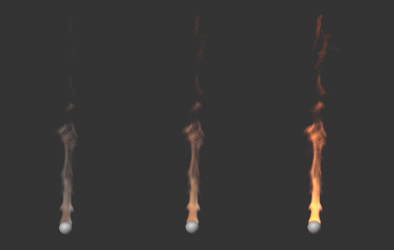 Notez que la température de la simulation affecte également la densité. La chaleur ascendante peut donc entraîner la fumée, même si elle doit tomber en raison d'une densité de flottabilité positive. Les deux effets s'influencent donc mutuellement.