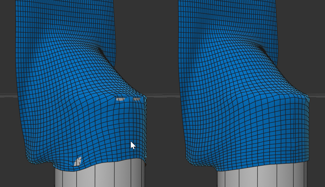 C'est un inconvénient : les sous-étapes (et les itérations) ont une influence sur la rigidité des objets tissu à simuler. Plus le nombre de sous-étapes/itérations est élevé, plus le tissu sera rigide (c'est-à-dire que la Flexibilité/étirement sera plus précise).