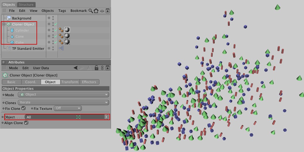 Il ne vous reste alors plus qu’à créer les objets en tant qu’Objets enfants de l’objet Cloneur.