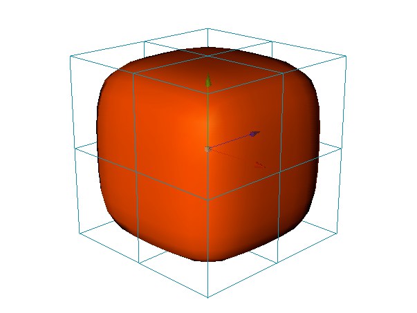 - (1) Q active et désactive les Surfaces de subdivision, ce qui permet de passer d’un affichage par cage à un affichage par Surfaces de subdivision.