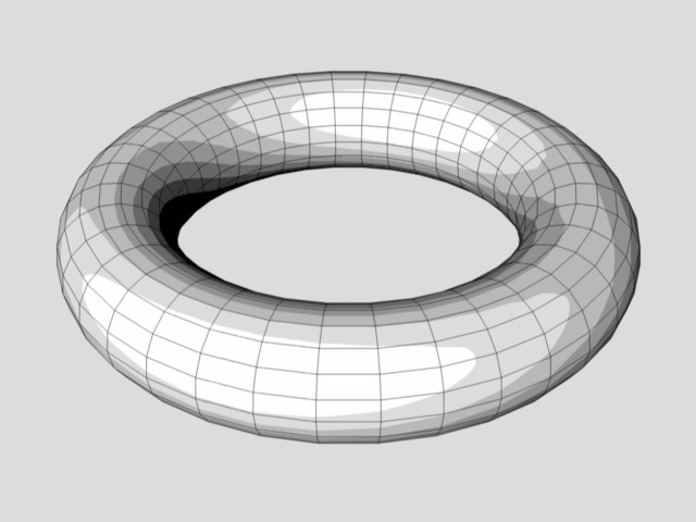 Cette commande crée par défaut un Tore (solide en cercle, de la forme d’un tuyau) sur le plan XZ.