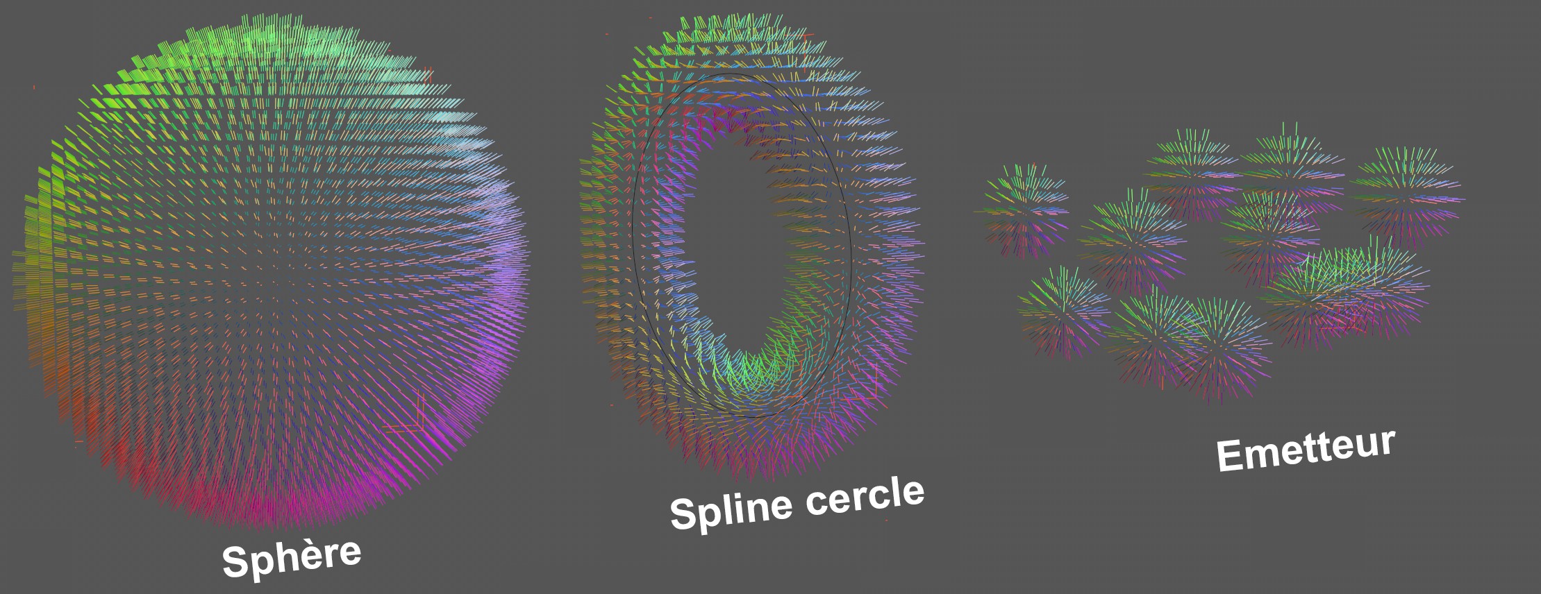 - Les objets et particules Matrice (utilisez le groupe particule pour les thinking particles)