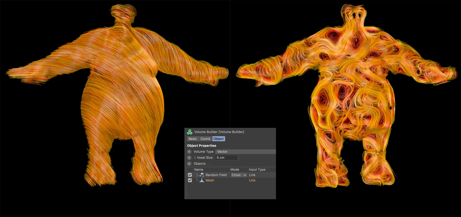 Une autre fonctionnalité de Cinema 4D, les Champs, peut aussi être utilisée pour contrôler les vecteurs dans l’espace. À quoi servent ces Vecteurs de volume ? Ils vous permettent par exemple de contrôler les forces à l’aide du Champ Force.