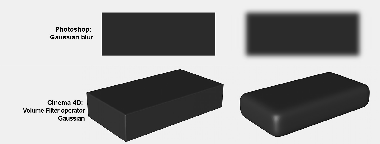 Par conséquent, tant Photoshop que Cinema 4D disposent de filtres présentant une fonctionnalité de flou gaussien :