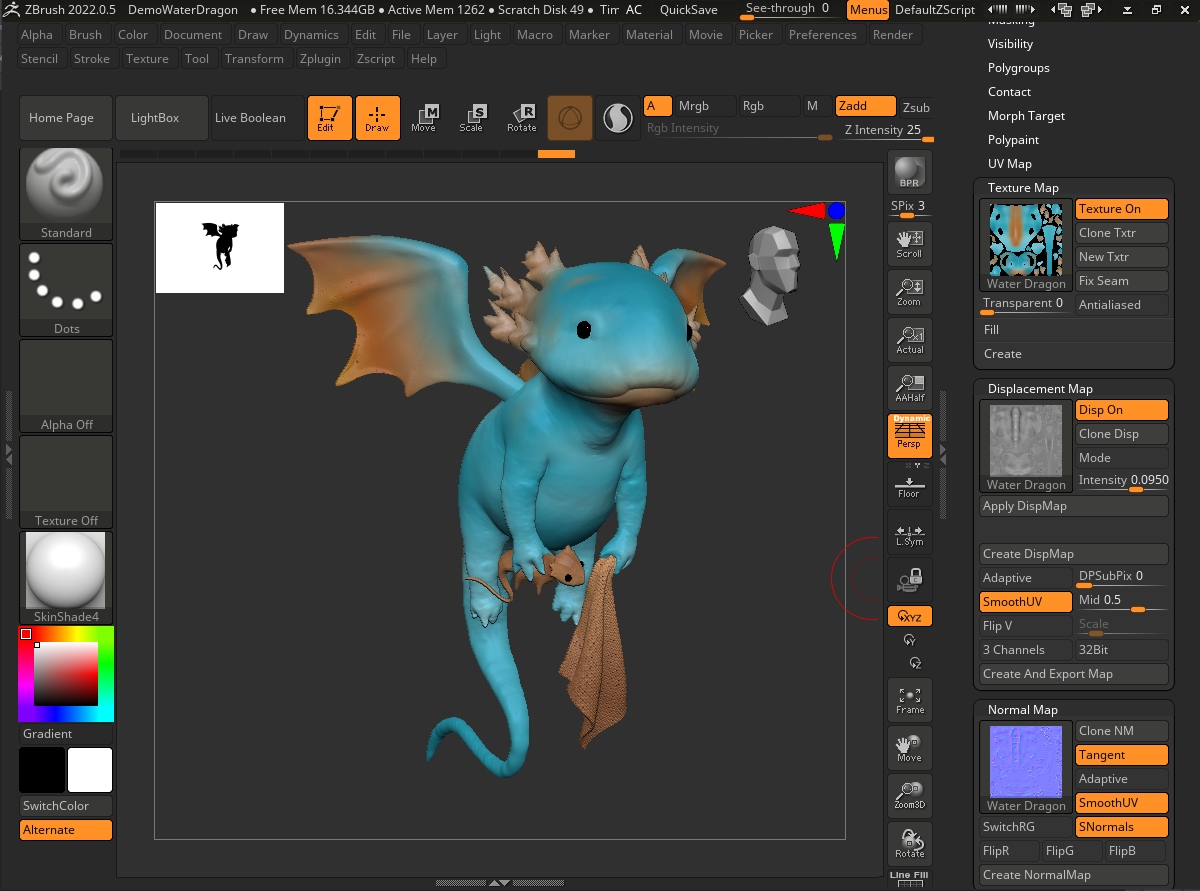 L'image ci-dessus montre un exemple de projet ouvert dans ZBrush. C'est l'un des exemples de projets fournis.